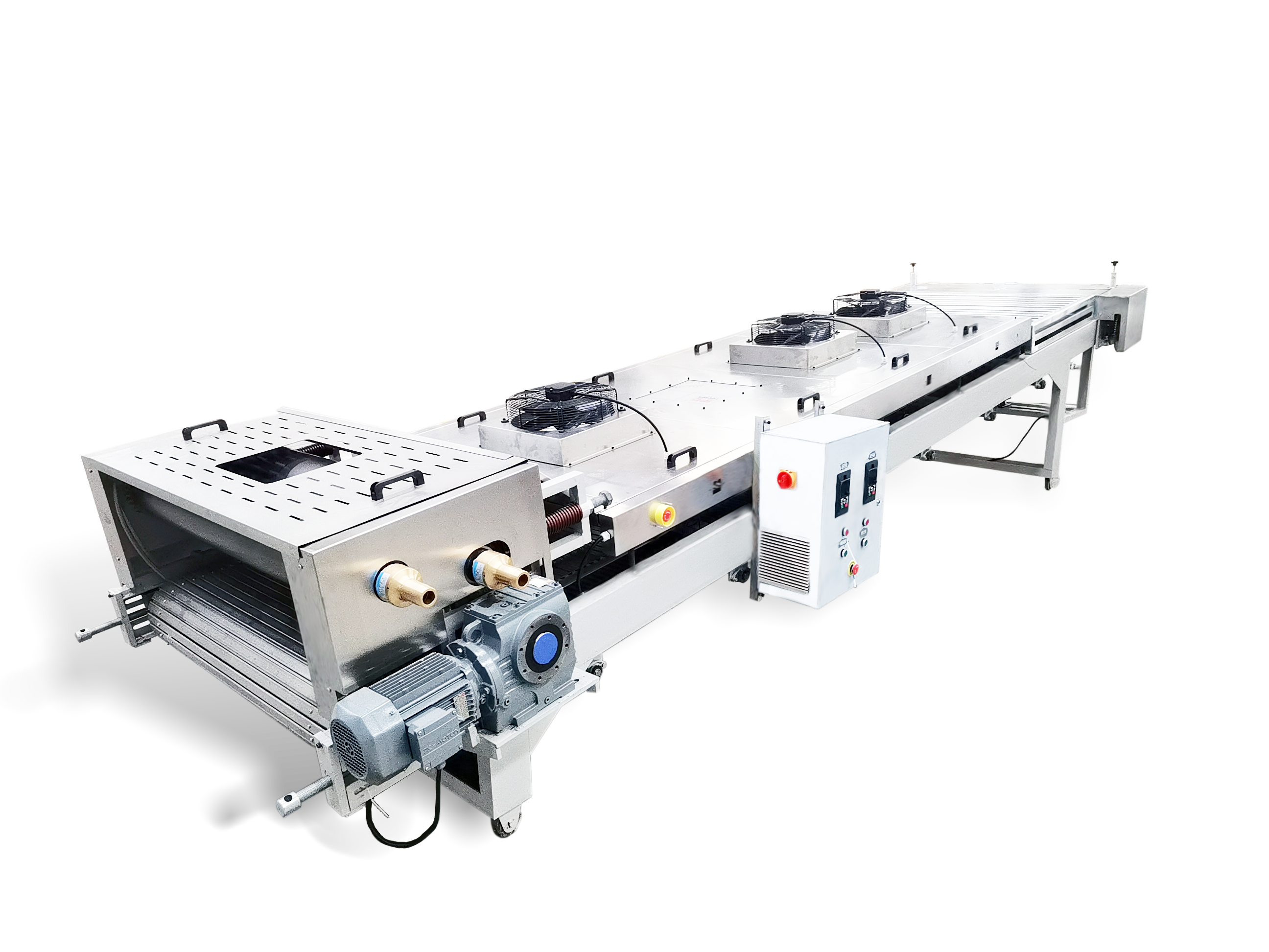 YPJ系列不銹鋼鏈板壓片機由冷卻壓輥、不銹鋼節片輸送帶、破碎和風冷系統組成。擠出機擠出的熱熔融狀物料經冷卻壓輥壓成 1-2mm 片狀,在不銹鋼節片輸送帶上風冷至常溫,破碎成片狀物料排出。可選配有空氣過濾,冷熱交換系統。